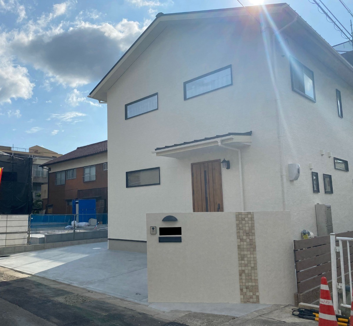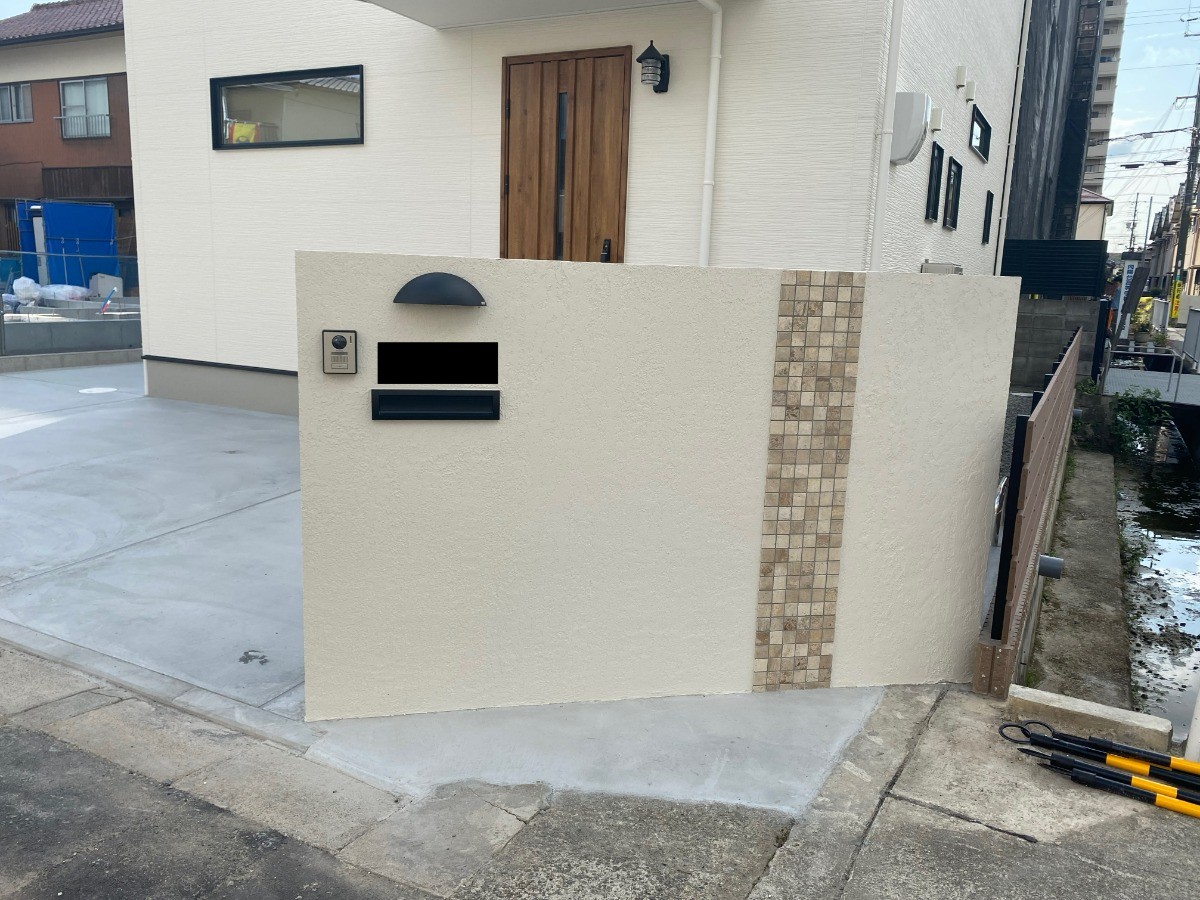 門柱:CBブロック積 ジョリパット仕上げ 一部クレモナモザイク