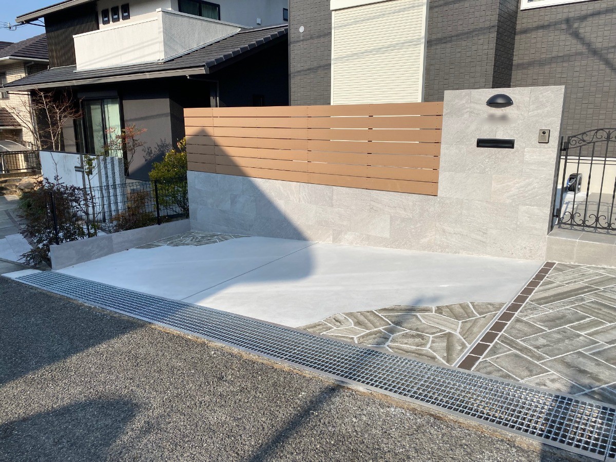 ガレージ:生コン コテ押さえ、一部ローラーストーン