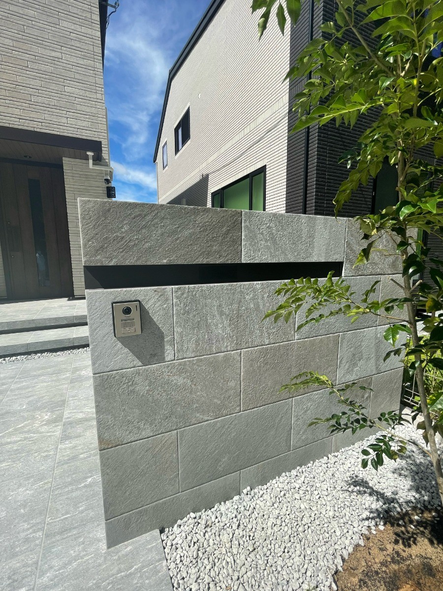 門柱:CB7段積 300×600タイル貼り