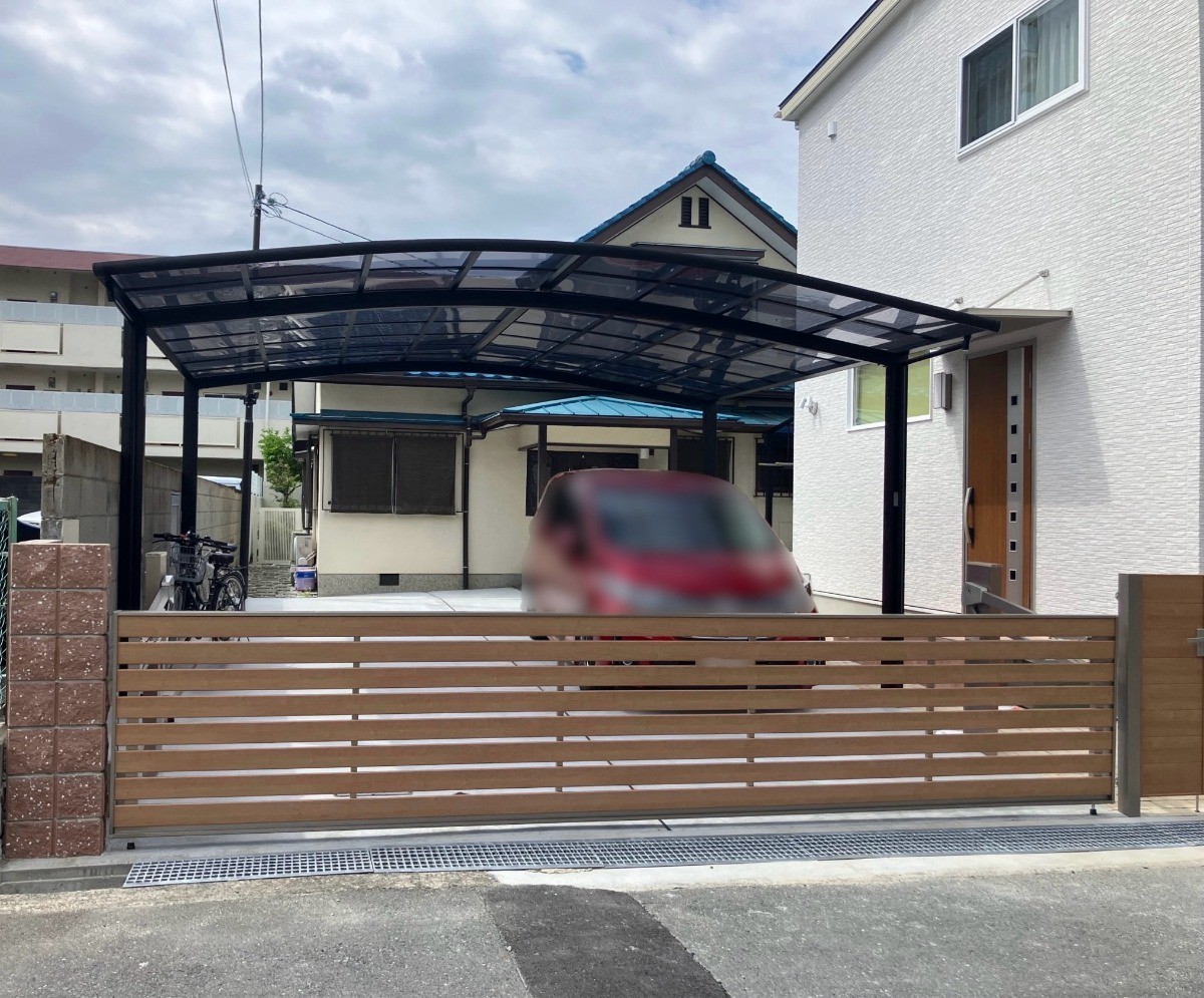 カーポート:(LIXIL)ネスカRワイド 54-54 ロング柱 (柱:ブラック 屋根:クリアブルー)
